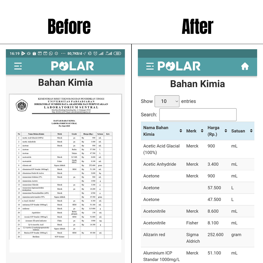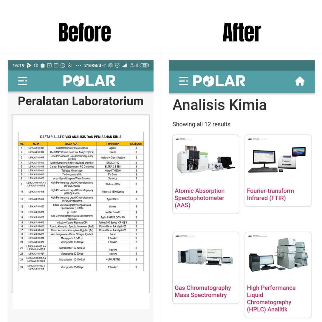 Bagaimana tampilan fasilitas Peralatan Laboratorium setelah adanya peningkatan pada app POLAR?