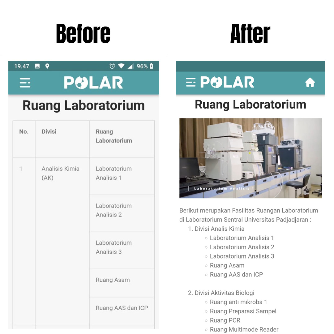 Bagaimana tampilan fasilitas Ruang Laboratorium setelah adanya peningkatan pada app POLAR?
